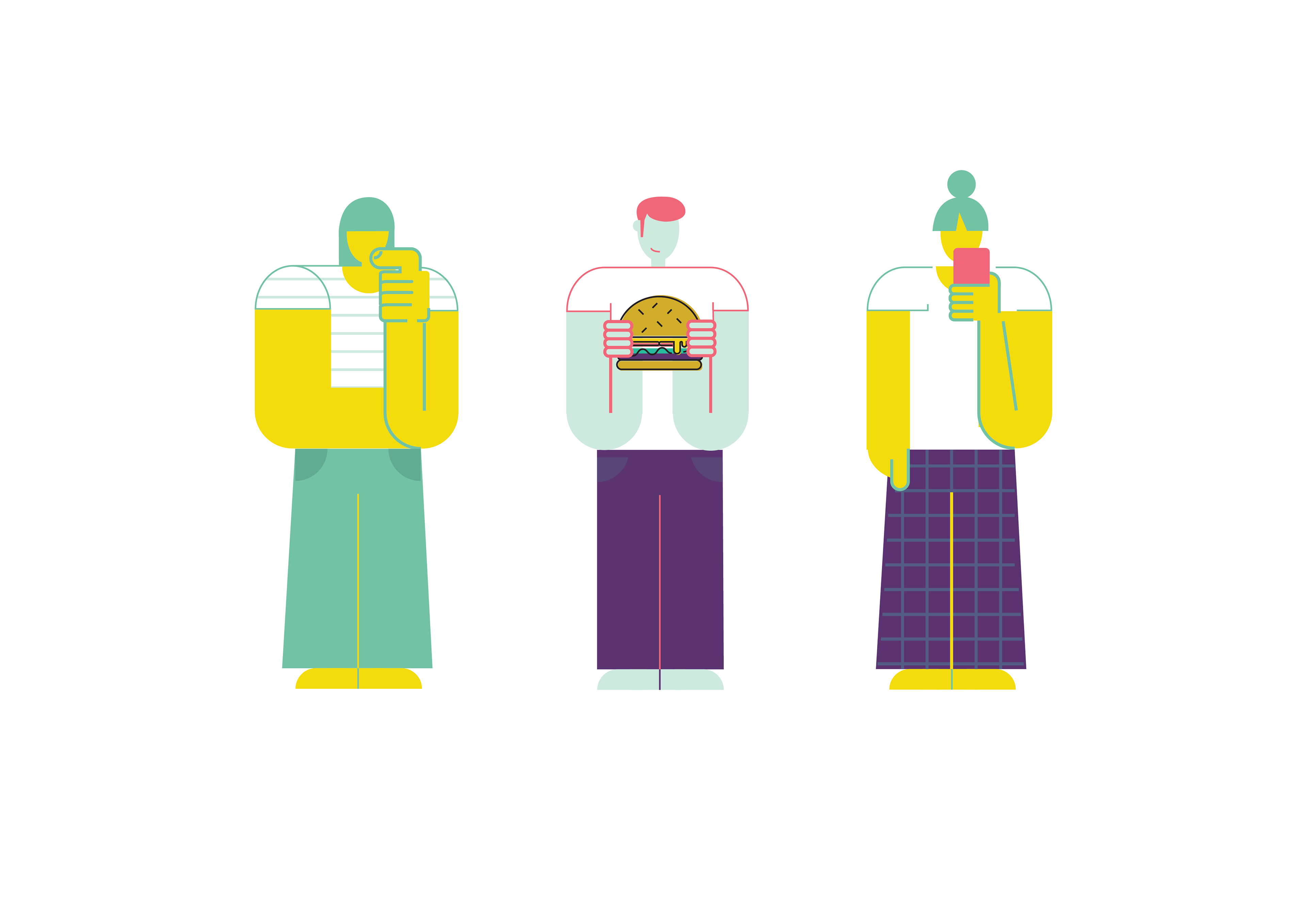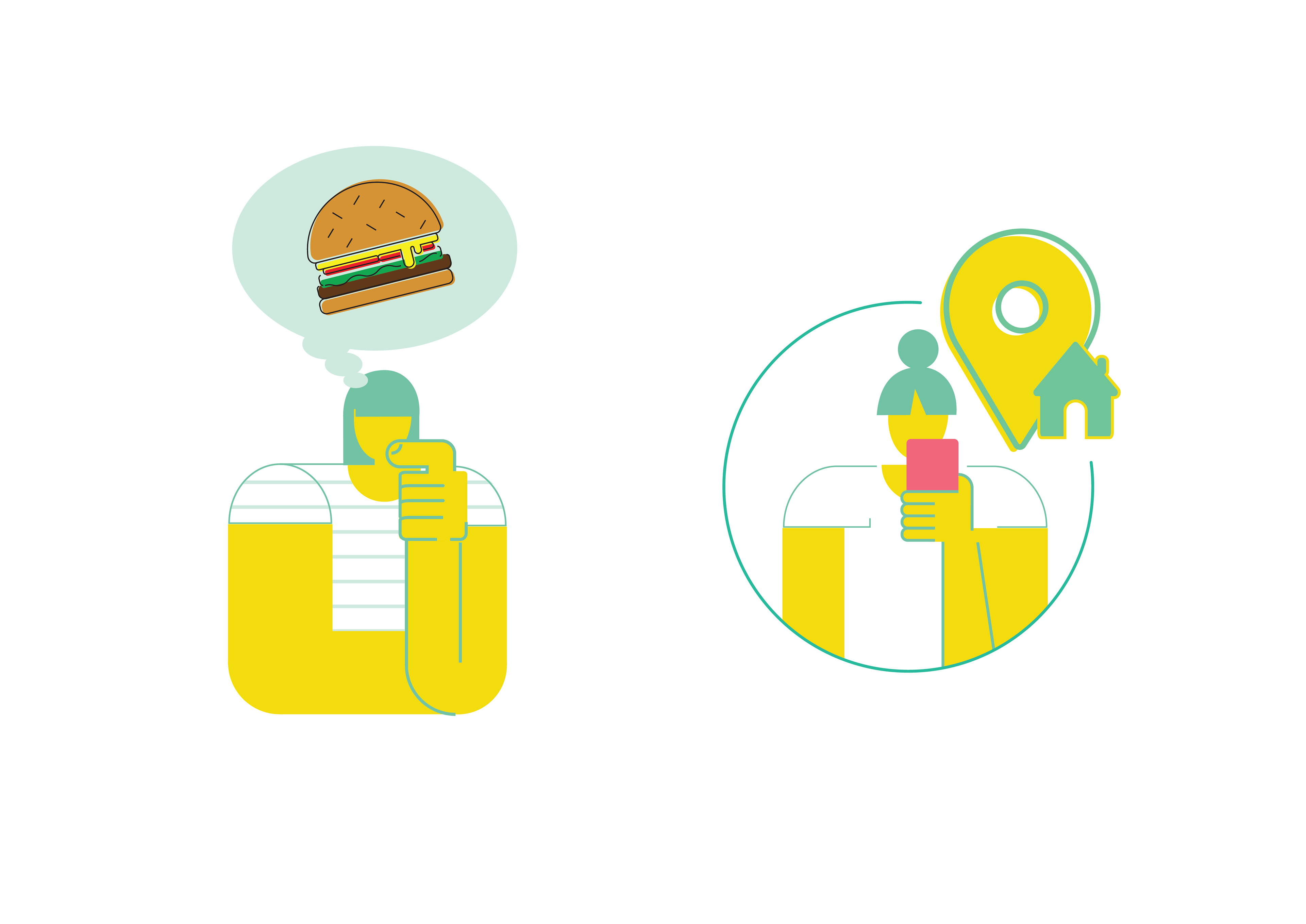 Characters creation for Fidmi app, an app where you can check the cheapest delivery food services in your area